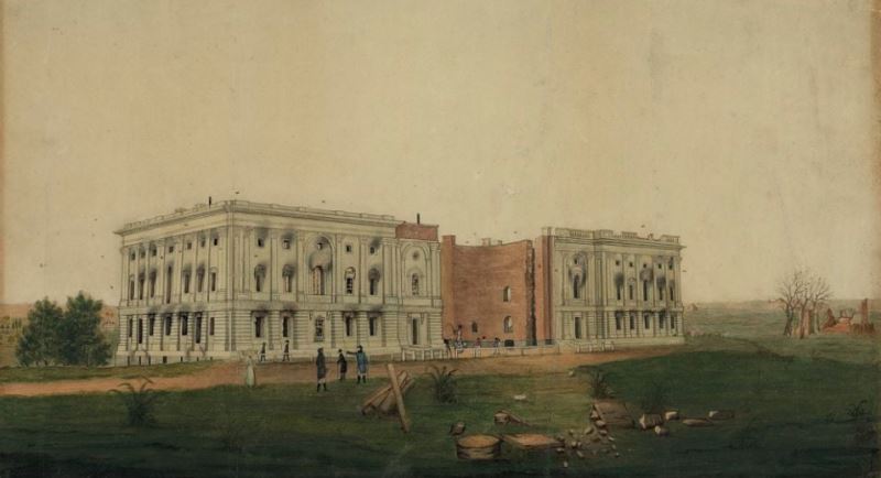 beyaz saray'ın ateşe verilmesinden sonraki halini gösteren temsili resim