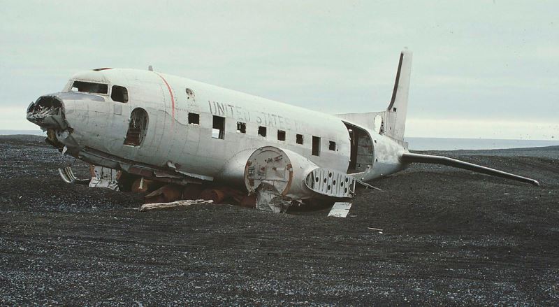 21 kasım 1973 tarihinde kaptan james wicke ve first officer gregory fletcher’ın uçurduğu douglas c-117d tipi bir uçak karbüratördeki ciddi buzlanma ve kötü hava koşulları sebebiyle izlanda’nın solheimasandur sahiline iniş yapmak zorunda kalır. olayda uçakta bulunan yedi kişi yara almadan kurtulur.