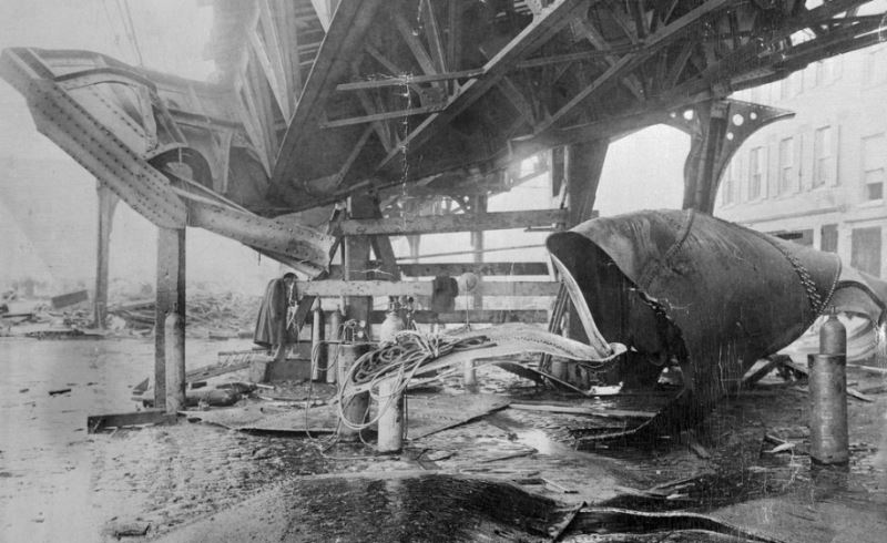bu sadece “tank patladı” olayı değil dostlar. 13 bin ton ağırlığındaki bu molasa kütlesi, saatte 56 kilometre hızla şehri süpürüp geçti. 21 kişi öldü, 150 kişi yaralandı. evler yerle bir oldu, tren rayları büküldü. molasa seli o kadar güçlüydü ki kimi binaları temelinden söktü.