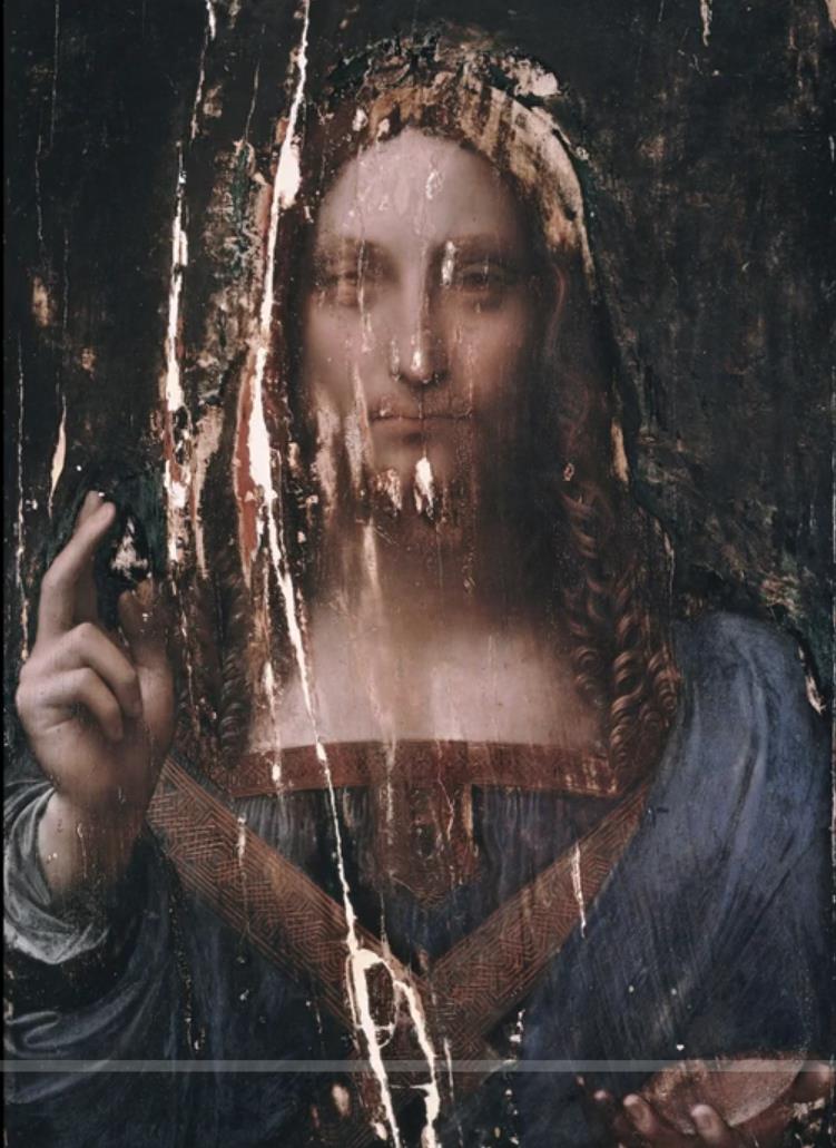 leonardo da vinci’ye atfedilen bu eser, isa mesih’i bir elinde dua işareti, diğerinde kristal bir küreyle tasvir ediyor. restorasyonun öncesi ve sonrası var. işte bu nedenle tablo “gerçekten leonardo’nun mu?” sorusuyla sanat camiasını ikiye bölmüş, netflix belgeseline konu olmuş, bir yatta saklandığı dedikodusuyla da magazin dünyasını sallamış.