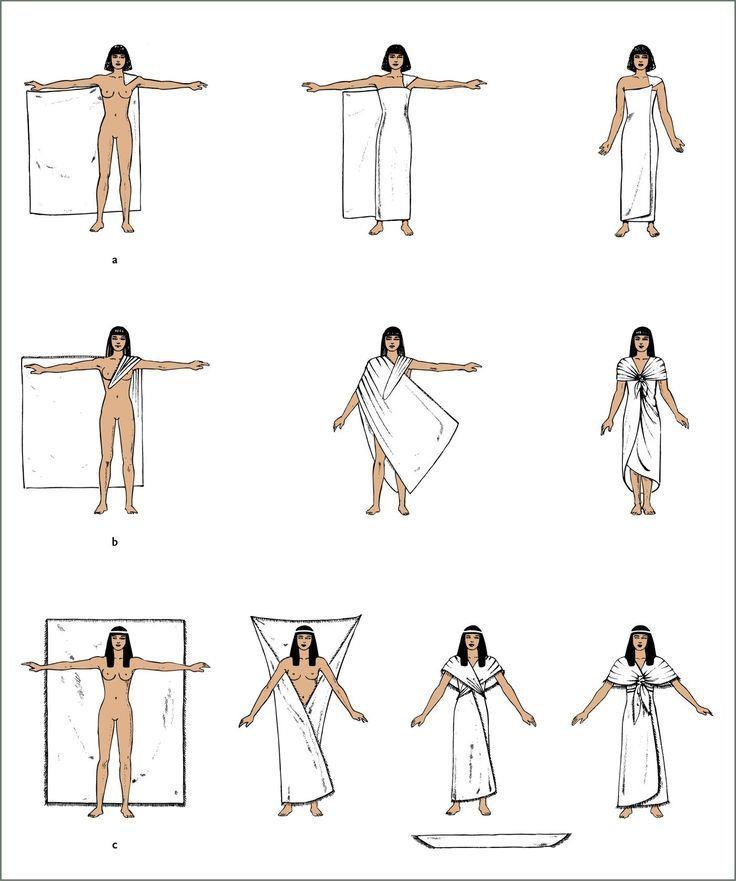 antik mısır'da, yüksek statülü kadınlar, göğsü açıkta bırakacak şekilde tasarlanmış, omuz askılı ve ayak bileğine kadar uzanan dar keten tunikler giyerdi: