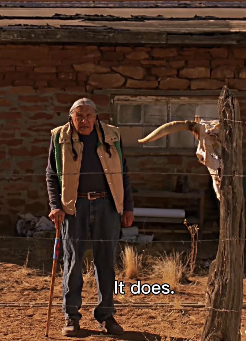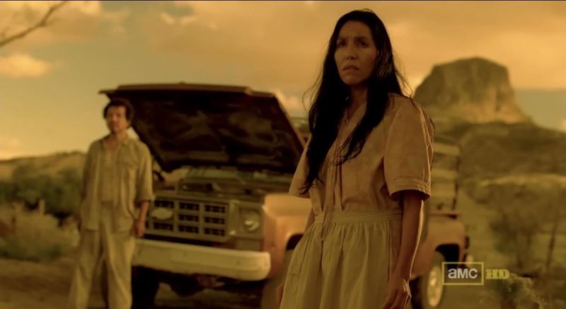dizinin çekildiği new mexico eyaletinde yaşayan ve amerika'da bir yerel halk kabilesi olan navajolarla ilgili olduğunu tahmin ettiğim göndermeler oldukça fazla. hu halkın amerika birleşik devletleri'nin etnik temizlik yaptığı halklardan biri olduğu ilgili başlıkta da yazılmış. bundan sonra yazacağım her sahnede amerikan yerlilerine tip olarak benzeyen kişilerin başına gelen olaylar gerçekleşiyor: