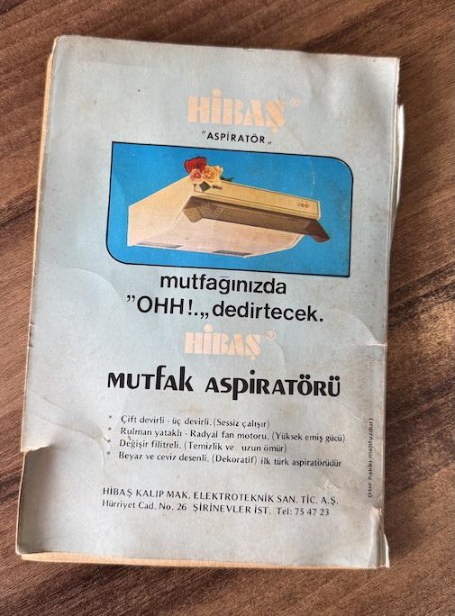 zaman geçince ben bu kitaba bir şekilde ulaştım. kitabı incelerken arka kapağı ilgimi çekti. normalde yazar ve kitap hakkında bilgi olur ya. bu kitabın arkasında güllü bir aspiratör vardı. buyurun şöyle göstereyim:
