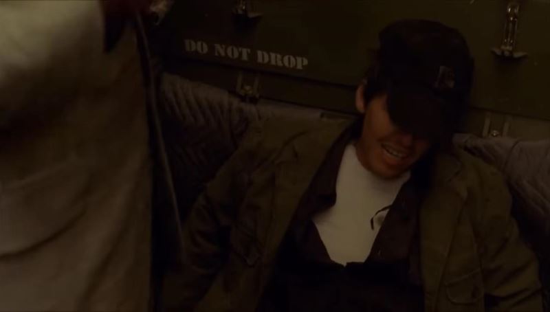 işte kuzen tam mermiyi yere bırakırken arkadaki kutuların üzerinde bir yazı kadraja giriyor.