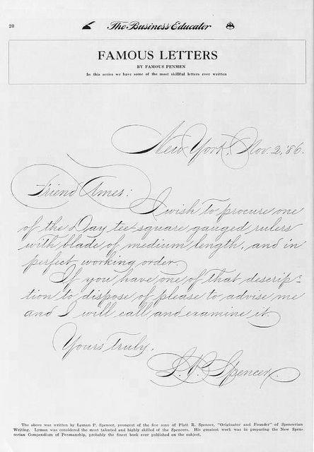 insanlara yazı yazmayı öğreten spencerian yazı kılavuzları 1848'den itibaren muazzam sayılarda üretildi ve ülke çapındaki okullarda yazı eğitimi için kullanıldı.