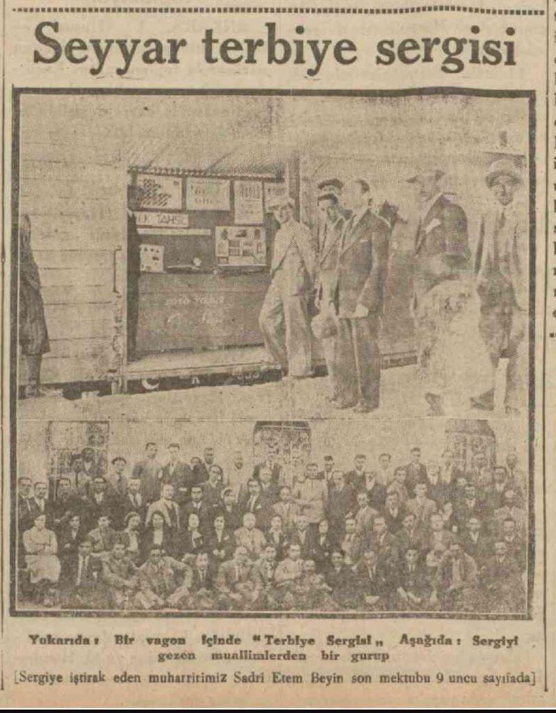 "bu üç vagonun içine sokulan fikir, trenin yüklendiği dava pek büyüktür... fakat asıl hedef, asıl canlı gaye yeni türkiye'nin eski türkiye'den ayrılan dönüm noktalarını tebarüz ettirmektir. bu fark üç vagonu gezen her adamın kafasına bir balyoz gibi çakar. türkiye neydi, ne oldu. resimle, grafikle, yazı ile kitapla anlatılan şey budur. bir vagona giriyorsunuz, sizin karşınıza falaka, cüz kesesi, rahle, divit çıkıyor, fakat hemen onun yanıbaşında yeni mektebi, bütün unsurlarıyla buluyorsunuz. fotoğraf, grafik, resim yeni mektebi anlatıyor. üç vagonu dolaşan adam 1920'den sonra doğan türkiye'nin manasını anlamakta güçlük çekmiyor. seyyar terbiye müzesi, kültür ve medeniyet davasının steplerde dolaşan, her uğradığı yere yeniden bir parça veren bir haldedir. ben vagonları gezerken yeni nesille eski nesil arasındaki farkı daha iyi anladım. türk çocuğunun elinden çıkan işler, kafasından çıkan fikirlerle dolu olan tren her istasyonda köy hocalarının, kasaba hocalarının bilgilerini, düşüncelerini cilâlıyan, onlara en modern usulleri götüren altı kişilik bir genç kafilesi stepte durmadan, dinlenmeden ankara bozkırında ağaç yetiştirir gibi yeni fikri, yeni hayatı sinema ile, grafikle, kitapla, konferansla, dersle ekmiye çalışıyor." (3 mayıs 1933 tarihli vakit gazetesi sayfa 6)