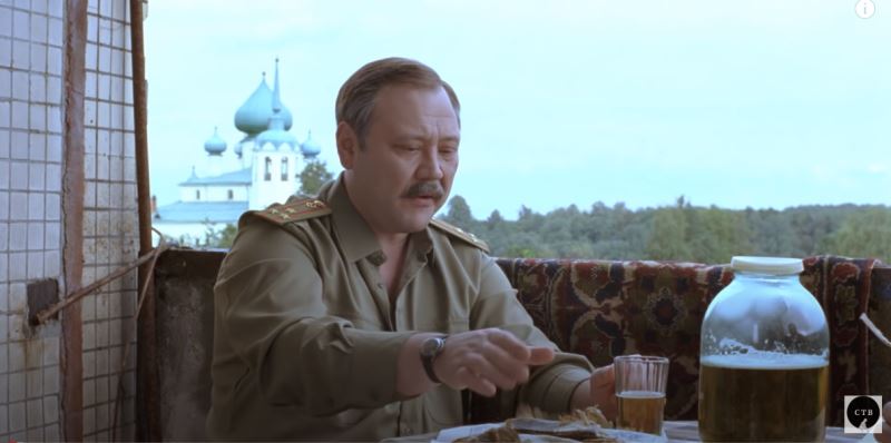 ateist sovyetler birliğinde, bir albay ve ateizm profesörünün arkaplanında kocaman bir ortodoks kilisesi mevcut. masada razlivnoy yani doldurma (sifon) bira var. zannımca bu kavanozlar koca sscb tarihinin özeti gibidir. şişe bira almaya paranız yetmiyor, lüks restoranlara veya barlara giremiyorsanız kavanozu kapıp bakkaldan sifon bira alırsınız.
