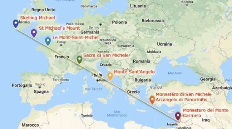 bu hayali çizgi, irlanda'daki skellig michael adasından başlayıp ingiltere'nin st. michael's mount ve fransa'daki mont saint-michel üzerinden geçerek italya'nın kuzeyindeki sacra di san michele manastırı'na uzanır; oradan da ege'de yunanistan'daki st. michael manastırını aşıp israil'deki stella maris manastırı'na kadar varır. yaklaşık 3500 km'lik bu hat üzerinde başmelek mikail'e adanmış birçok kilise ve manastırın neredeyse kusursuz bir düz çizgi oluşturduğu haritalarda gösterilmiştir. bu denli uzak mesafedeki kutsal yapıların hizalanması ilk bakışta esrarengiz görünse de, buradaki önemli soru şudur: bu dizilimler gerçekten anlamlı bir düzenin kanıtı mıdır, yoksa rastlantısal hizalanmalar mıdır?