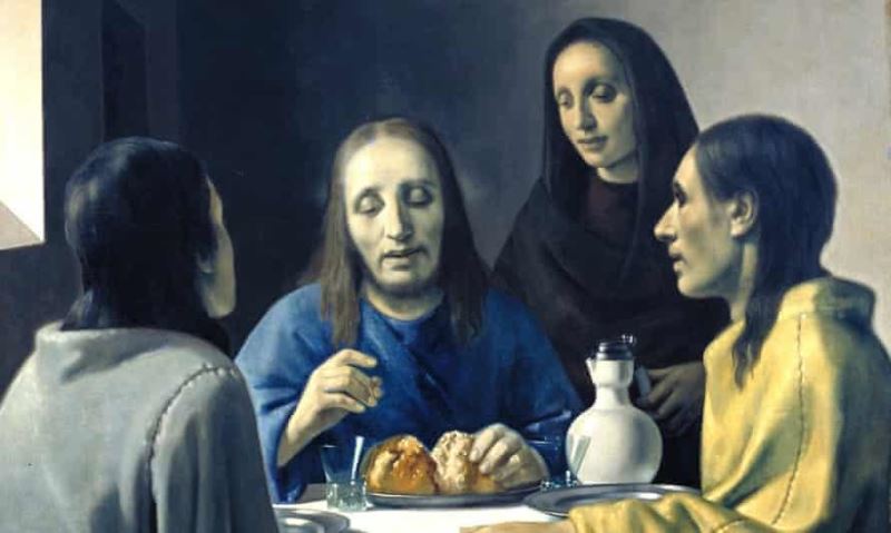 ilk büyük vurgunu 1936-1937'de geliyor: "emmaus'ta akşam yemeği". bu tabloyu johannes vermeer'in "kayıp" bir eseri diye sunuyor. ünlü sanat tarihçisi abraham bredius bile "bu bir şaheser!" diye ortalığı ayağa kaldırıyor. rotterdam'daki boijmans van beuningen müzesi 520 bin guilder’e (bugünün kim bilir kaç milyonu) satın alıyor. abimiz toplam bilinen 14 sahte tablo yapıyor ama torununa göre daha fazlası var. çoğu sahteyi de savaş yıllarında üretiyor.