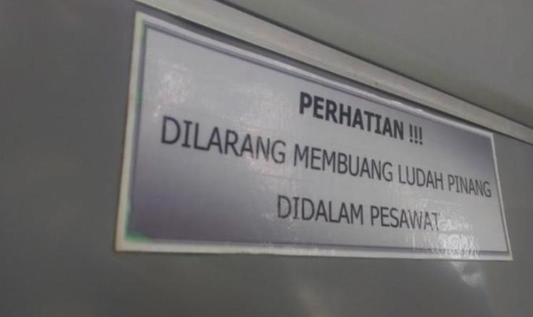 hatta havaalanında da aynı yazıyı görmüş fakat tam anlamlandıramamıştım. ama uçağın içindeki yazı tam anlamıyla her yerde her zaman sirih pinang ve kireç tüketildiğini ve ağız suyunun da gelişi güzel her yere tükürüldüğünü açıklıyordu. "dikkat, sirih pinang yiyenler uçağa tüküremezler, yasaktır!"