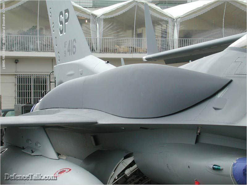 - gövde üzerine "conformal fuel tank" denilen yakıt tankları  koyulmuş. bu tankların birkaç avantajı var. ilki daha fazla yakıt taşıyor. f-16'nın kanat altında taşıdığı harici tank 370 galon kapasitelidir. her bir cft ise 450 galon yakıt taşıyor. böylece uçağın harekat yarıçapı genişliyor. bir diğer avantajı daha az aerodinamik geri sürükleme*oluşturuyor. bu da uçağın daha az yakıtla daha fazla havada kalması demek. bir diğer avantajı ise radar izinin daha düşük olması. yakıt tankları gövde üzerinde olduğu için kanat altında boşalan istasyonlara faydalı yük yani bomba/füze/pod takmak mümkün.
