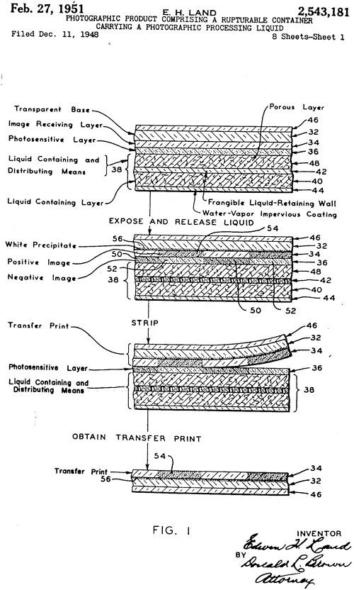 işin zor kısmını geride kalmıştı şimdi sıra kameraya gelmişti. kameranın ağzındaki bir çift silindir kapsül tasarladı, bu silindirler filmin yüzeyini yırtıyor ve reaktifin film boyunca eşit şekilde yayılmasını, tüm görüntü alanını kaplamasını sağlıyordu. reaktif yayıldıkça, çeşitli kimyasallar negatiften pozlanmamış gümüş halojenürü uzaklaştırıyordu ve geri kalan kısım indirgenerek nihai görüntü oluşuyordu.