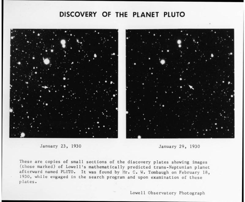 percival lowell'in ölümünden sonra, onun adının verildiği lowell gözlemevi'nde çalışan clyde tombaugh, percival lowell'in yazdıklarından yola çıkarak dokuzuncu gezegeni arıyordu. hatalı hesaplamaları o da doğru kabul etmiş ve gökyüzünde gözlem ile araştırmalar yapıyordu. sistematik bir şekilde gökyüzünün fotoğraflarını çekiyor ve bu fotoğraflardaki farklılıkları inceliyordu. nihayet 1930 yılında bu fotoğraflardan birinde kendi kendine hareket eden bir nokta gördü. araştırmalarının sonunda ise bunun yeni bir gezegen olduğunu ilan etti ve plüton keşfedilmiş oldu.