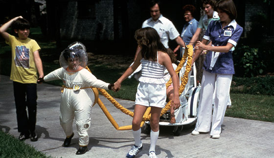 o dönem doktorlar bu hastalıktan kurtulacaklarını düşündüler, belki de bu düşünce bir meraktan olabilirdi, kim bilir? bunu için plastik balondan steril bir oda yapıldı. ona verilecek su, hava, yiyecek, bez ve giysiler steril bölmeye girmeden önce etilen oksit gazıyla dolu bir bölmede 60 santigrat derece sterilize edilip david'in kullanımına sunulurdu.