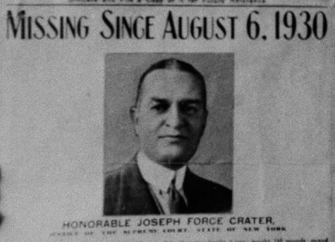 1930'da, joseph force crater, yüksek mahkeme'ye hakim olarak atanmıştı. ancak birkaç ay sonra, 6 ağustos akşamı, iki arkadaşıyla akşam yemeği yedikten sonra, bir anda kayboldu. eşi, on gün boyunca maine'deki evlerine dönmemesi üzerine durumu yetkililere bildirdi. hikaye hızla kamuoyunun ilgisini çekti ve hakimin kaybolmadan önceki günlerde sergilediği tuhaf davranışları, olayı daha da gizemli hale getirdi.