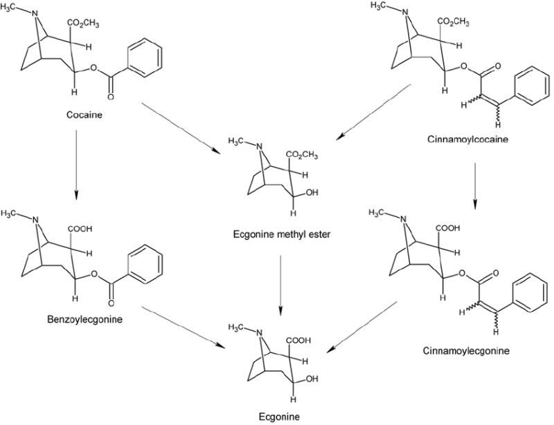 o proses çıktısı eskiden beyaz renkli olmaktaydı zira kullanılan koka bitkisi cinsi, yüksek saflıkta ama düşük miktarlarda kokain üretiyordu ve elde edilen kokain görece saf olmaktaydı, ancak günümüzde başka bir koka bitkisi cinsi kullanılıyor, daha düşük saflıkta ancak daha fazla kokain üretiyor. bu sebeple sadece yukarıdaki bkz'da bahsettiğim işlemler saf kokain eldesine yeterli olmaz, renk sarı-kahverengi tonlarında olur, bu sebeple kimyasal olarak işlemden geçmesi gerekir. bu işlemleri detaylı anlamanız için organik kimya bilmek lazım o sebeple örnekleyerek anlatmaya çalışayım; elde edilen ham kokain içerisinde sinamoil kokain (cinnamoyl cocaine) denen bir ekgonin türevi safsızlık olarak bulunmaktadır, şey gibi düşünün, kokain ekmek, ekgonin un, sinamoil ekgonin de kek gibi, ekgonin ikisinin de ortak hammaddesi. illegal laboratuvarlar tek basamakta ekmek harici diğer unlu mamülleri yakarak daha az miktarda ama görece daha saf ekmek yani kokain elde ederler.