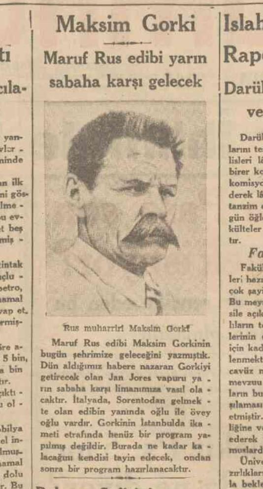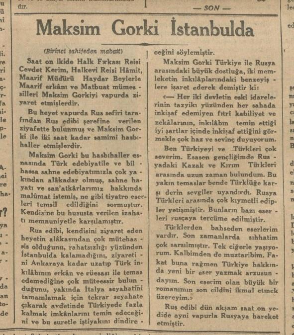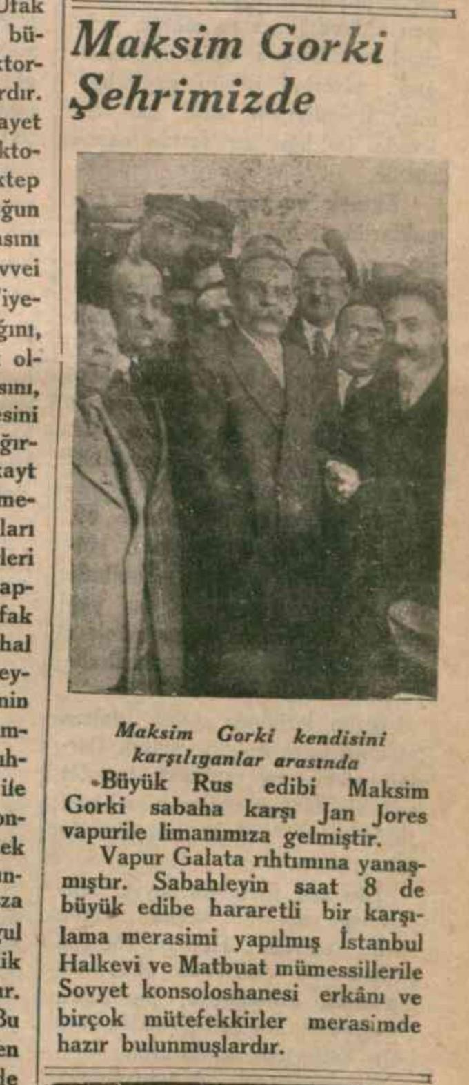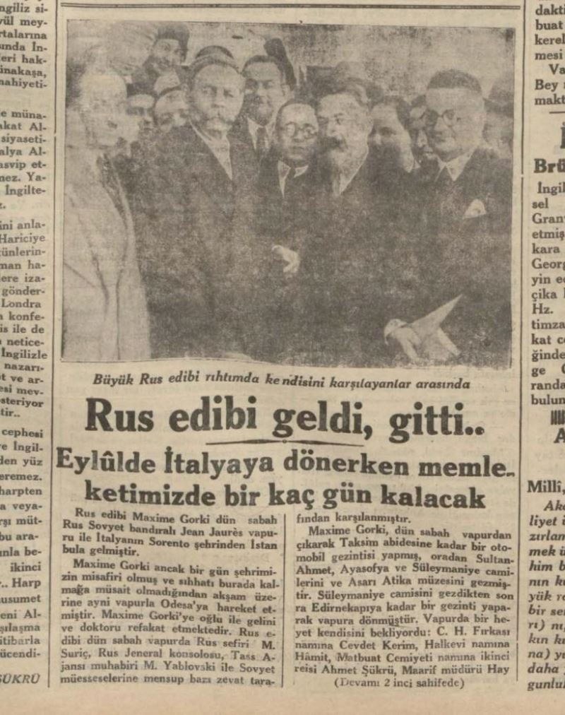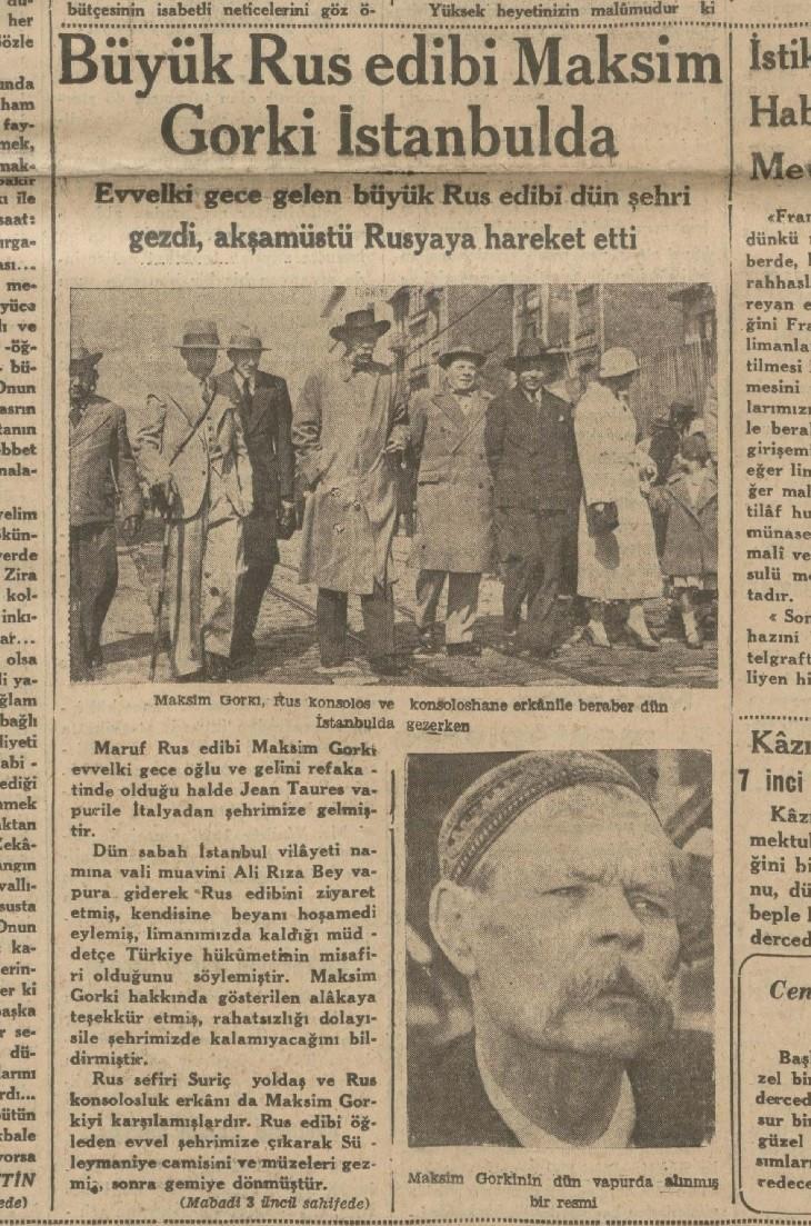 gorki, mayıs 1933'te istanbul'u ziyaret etmiş