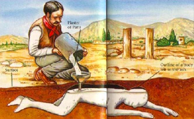 1863'te arkeolog fiorelli, kazılar sırasında bu boşlukları fark etti. boşlukların içine sıvı alçı enjekte etti ve alçı donduktan sonra dışarıdaki sertleşmiş kül tabakasını dikkatlice yonttu. ortaya çıkan şey; kişinin öldüğü andaki pozisyonunu, kıyafet kıvrımlarını, hatta bazen yüz ifadesini birebir yansıtan bir heykel-kalıptı.