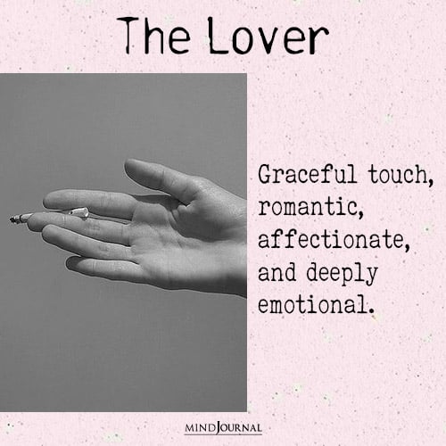 3- eğer bu tutuşla yapan bir tiryakiyseniz, bu aslında romantik bir ruha sahip olduğunuzu göstermektedir. duygusal bağlara değer veriyorsunuz ve beden dilinizde de görülen sıcak ve şefkatli bir yanınız var. derin ve anlamlı ilişkiler arayan birisiniz.