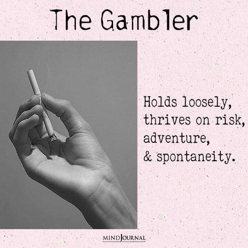 2- eğer sigarayı bu şekilde gevşek ve rahat bir şekilde tutuyorsanız kumarbaz tarzı bir kişiliğe sahipsiniz. bu tip, spontane, maceracı ve risk almaktan hoşlanan biridir. tıpkı şans oyununda temkinli davranan biri gibi, kumarbaz da hayata cesur bir yaklaşımla ve dramatik bir yetenekle yaklaşır.