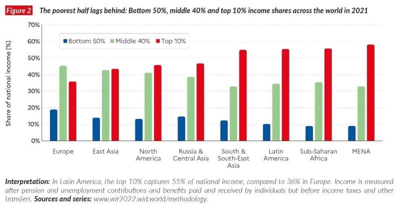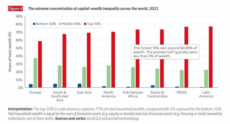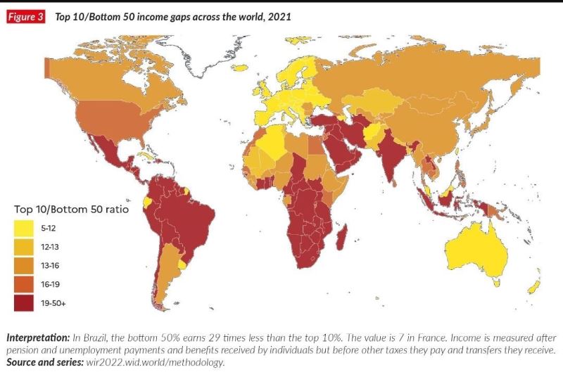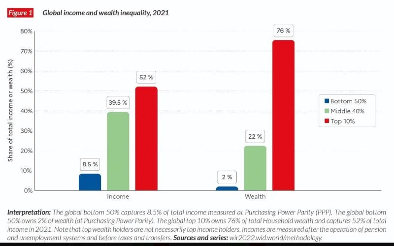 2021 yılında dünyada gelir ve servet dağılımı. dünya hasılasının yüzde 52'si, servetin ise yüzde 76'sı en zengin yüzde 10'luk nüfusun elinde.