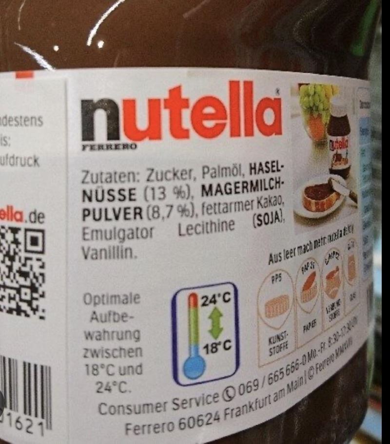 algı yüzünden yurt dışında fındık fazla, şeker az diyenlerin kaynağı nedir mesela? çünkü doğru değil. sadece bazı partilerde yağsız süt tozunda ufak bir fark varmış bir dönem. güncel olarak tamamen aynılar. kaloriler bile birebir aynı. ingiltere’de şeker vergisi var üstelik, çoğu üründe fiyat nedeniyle şekeri kısarlar biraz, nutella aynı içerikte. hani daha yağlı fındık falan desek, o da değil çünkü ürünün akışkanlığı tutmazdı ve yağ içeriği/kaloride farkı görürdük. nutella standart reçeteli bir ürün. ısrarla farklı diyen, dolapta yarısı kalmış nutella ile yeni alınmış taze nutella’yı karşılaştırıp plasebo etkisi yaşıyor muhtemelen. market ürünlerinde tadı gerçekten farklı olan ürün arayanlar hayvansal gıdalara bakabilir, çünkü gerçekten hayvan beslenmesi nedeniyle farklılar.