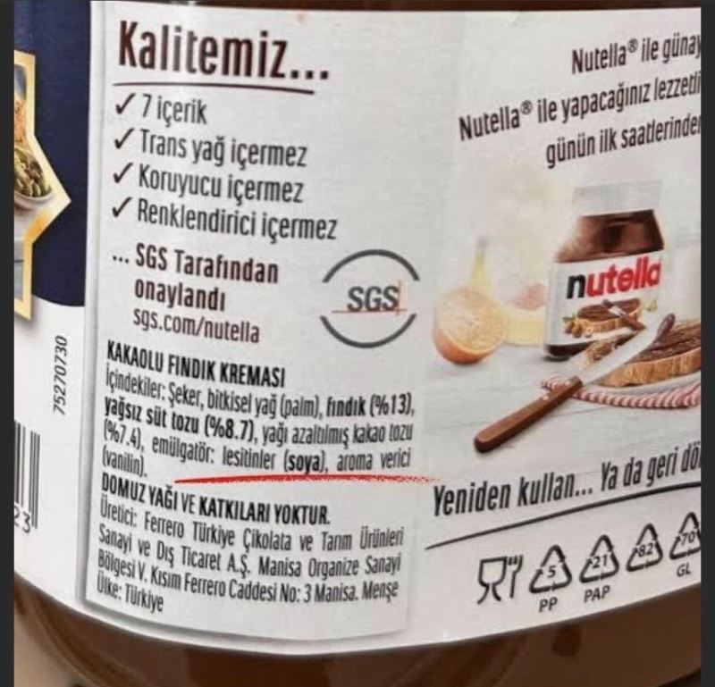 türkiye’de satılan nutella